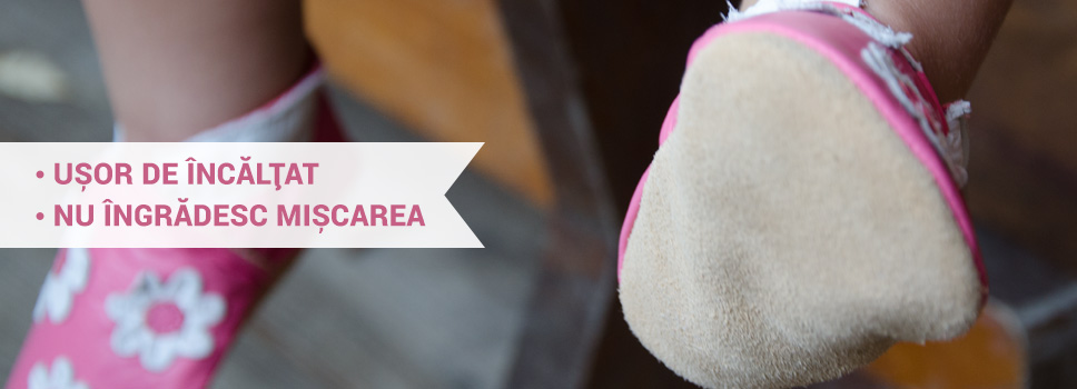 Este ideală pentru primii paşi, dar şi ca încălţăminte de interior (casă, grădiniţă).